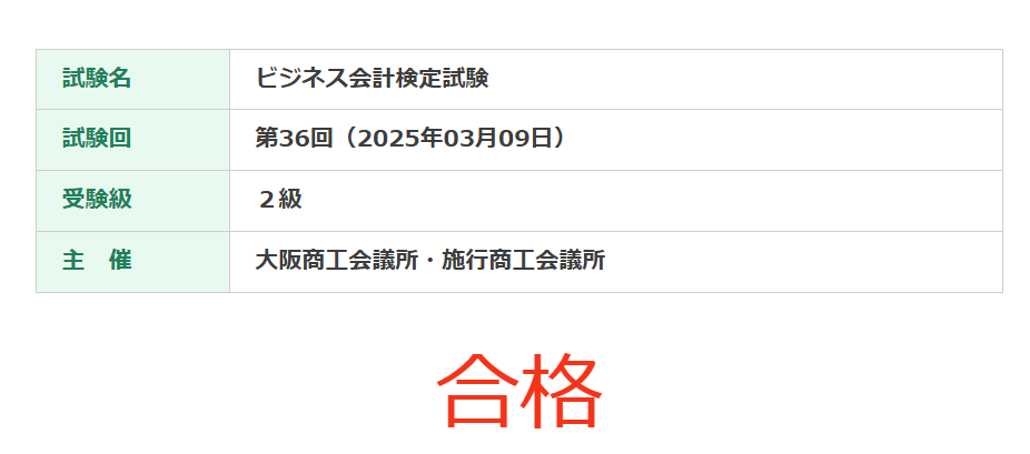 なお、簿記2級はビジネス会計検定2級の試験日までに合格することが出来ました。