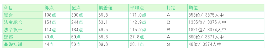 | 記述式(行政法) | 20/20点 | 満点は自信になる。 |