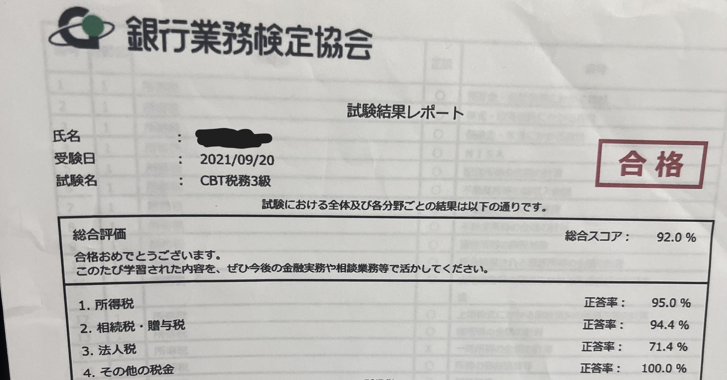 CBT方式で受験し、勉強時間は約15時間で92点で合格する事が出来ました。